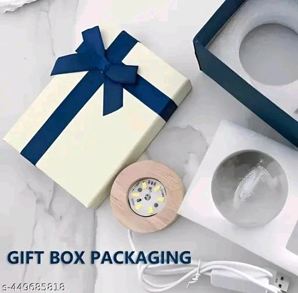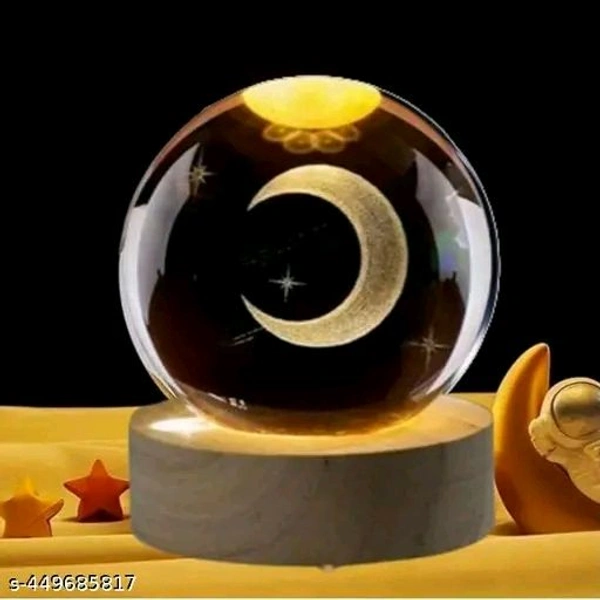 The image depicts a decorative light or night lamp in the form of a glass globe placed on a wooden base. Inside the globe, there is a whimsical scene featuring a small figure climbing a ladder towards the moon, surrounded by tiny stars. The moon is illuminated, creating a soft, warm glow, while the stars add a magical effect to the design. The scene gives a dreamy, enchanting vibe, making it suitable as a decorative piece for a bedroom or a cozy space.