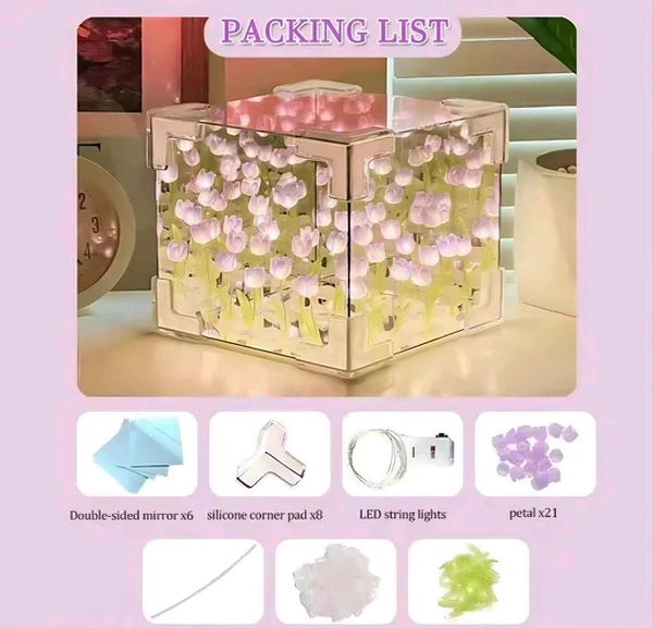 Unleash your artistic side with our DIY Tulip Cube Mirror Lamp. This unique creation allows you to combine creativity and light, resulting in a personalized piece that reflects your individual style and makes any space truly your own.