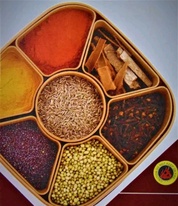 KP Square Masala Box Spice Box, Plastic Square 7 Sections