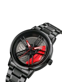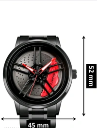 The watch face incorporates a rotating wheel that spins 360 degrees, resembling a car wheel.